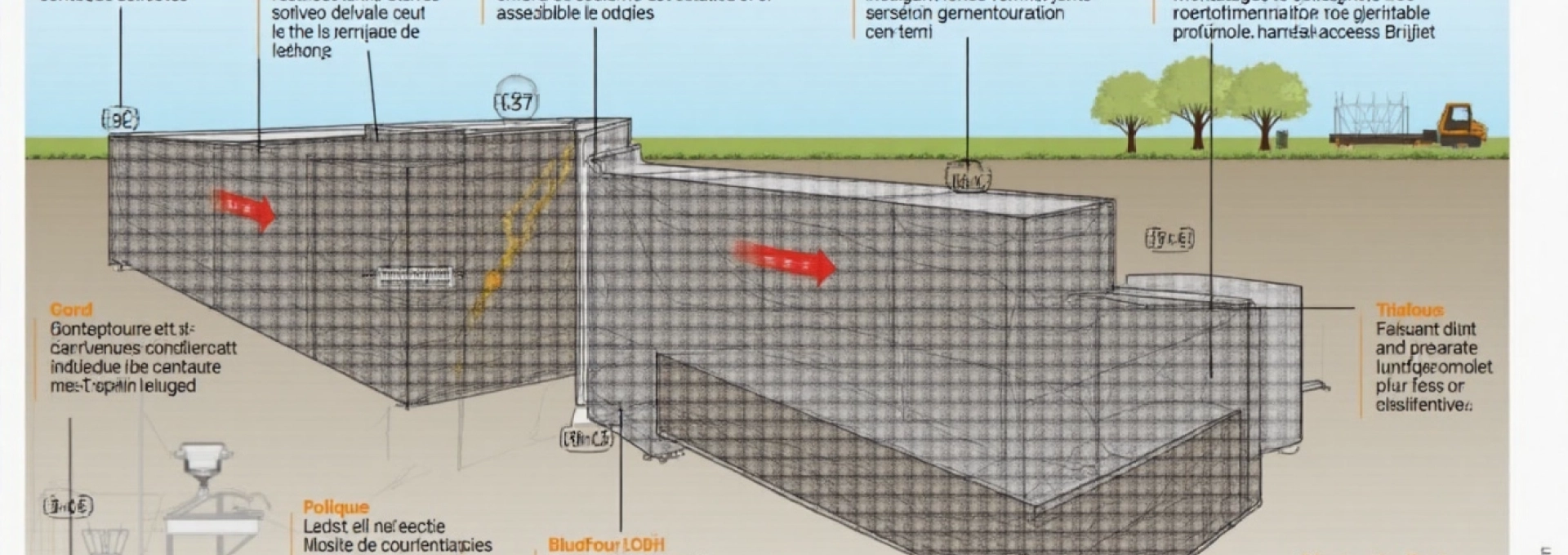 Un drainage efficace est essentiel pour préserver l’intégrité des dalles de roulement. La conception doit prévoir des pentes suffisantes, généralement de l’ordre de 1 à 2%, pour assurer l’écoulement rapide des eaux de surface. Ces pentes doivent être orientées vers des systèmes de collecte appropriés, tels que des caniveaux ou des avaloirs.